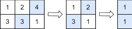 - In the first operation, we remove 4 from the first row and 3 from the second row