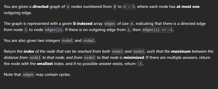 [Java] LeetCode 2359. Find Closest Node to Given Two Nodes 본문
